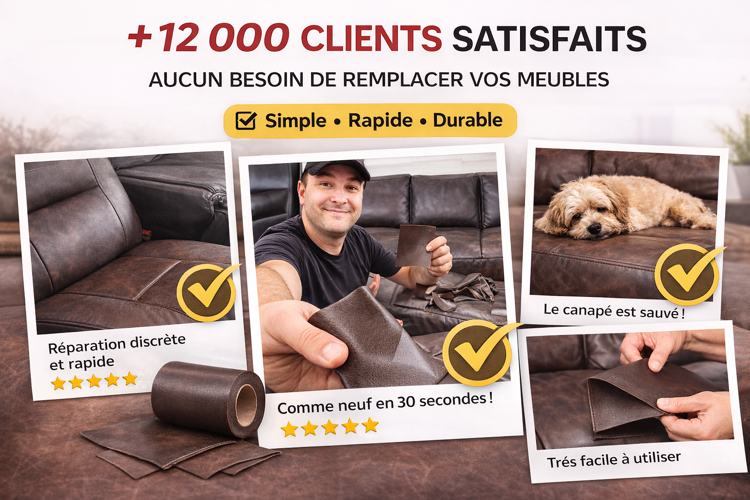 Grâce à notre patch de réparation en cuir auto-adhésif, redonnez une seconde vie à tous vos meubles et surfaces en cuir, sans outils et sans stress.